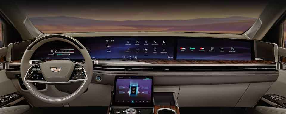 OLED Display: The Escalade features an industry-first curved OLED display that spans more than 38 inches across the dashboard. This offers stunning visuals, with twice the pixel density of a 4K television, making it one of the most advanced displays in any vehicle.